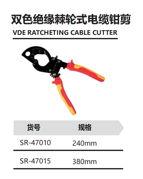 双色绝缘棘轮式电缆钳剪