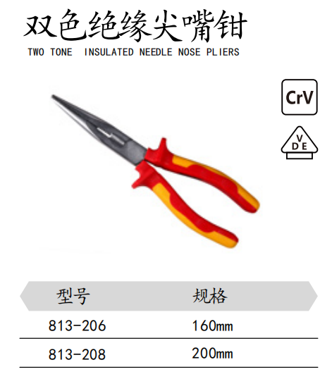 双色绝缘尖嘴钳