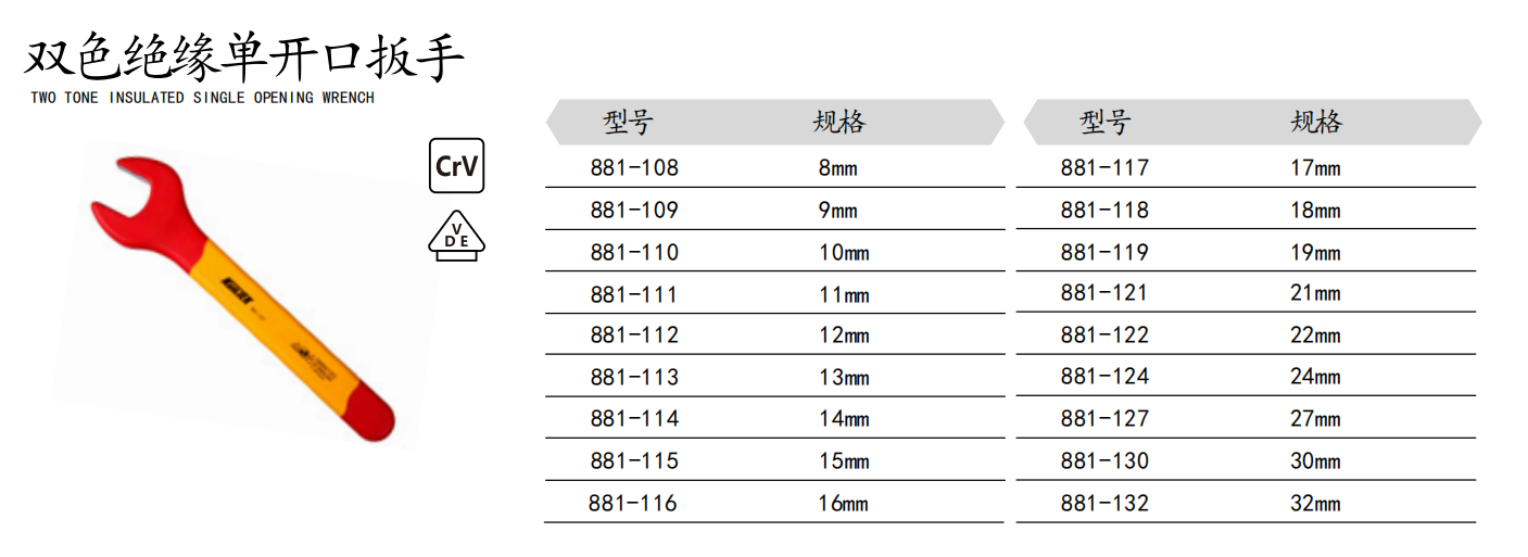 双色绝缘单开口扳手
