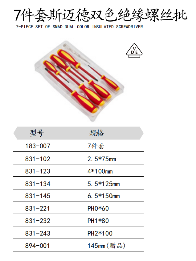 7件套斯迈德双色绝缘螺丝批