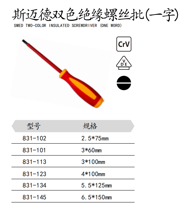 斯迈德双色绝缘螺丝批(一字)