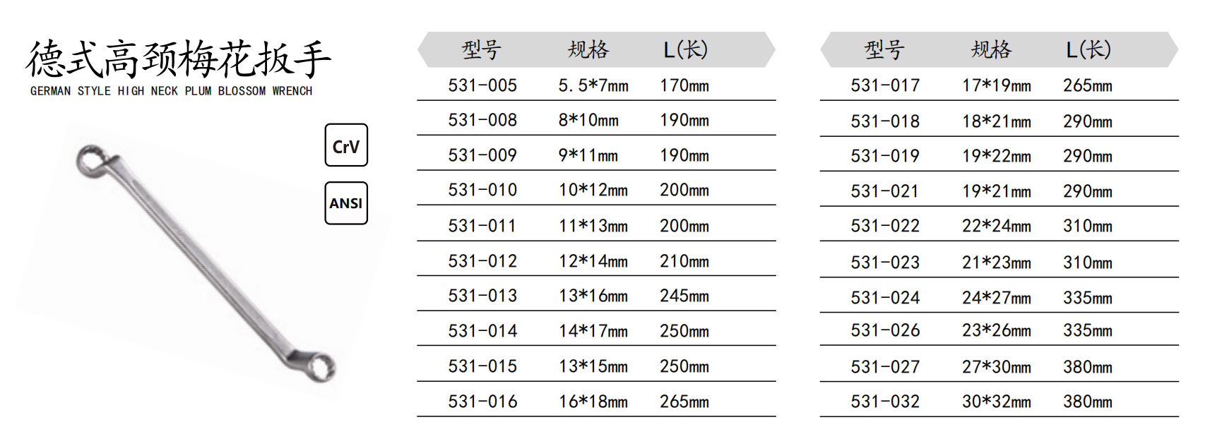 德式高颈梅花扳手