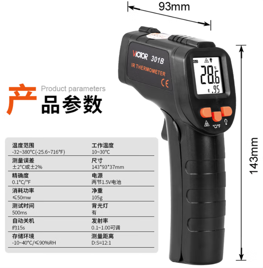 胜利仪器(VICTOR)工业红外测温仪 高精度油温计厨房专用油温枪测温度枪 VC301B