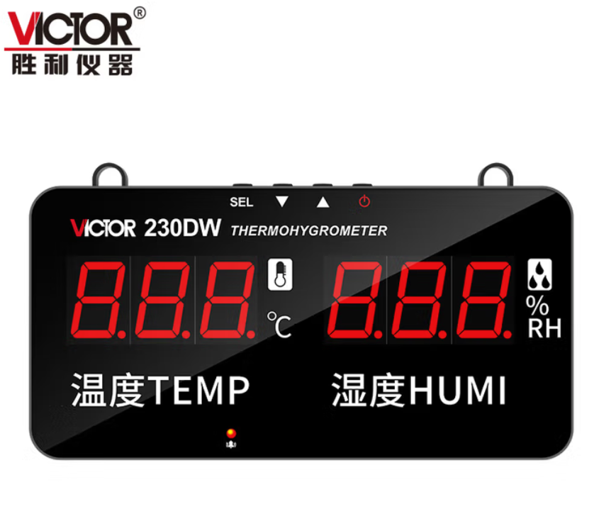 胜利仪器(VICTOR)大屏幕电子温湿度计高精度壁挂式三位半工业级报警器VC230DW
