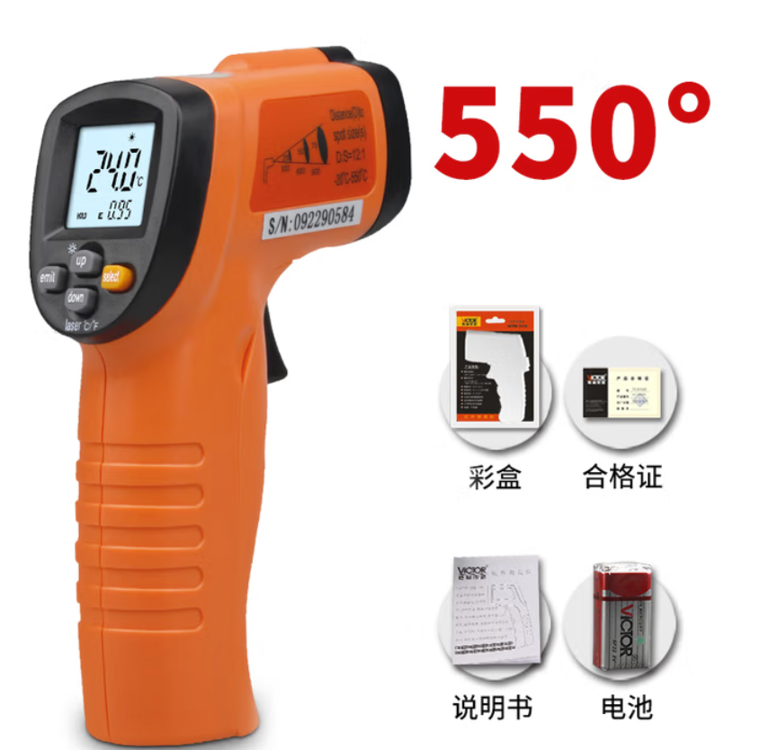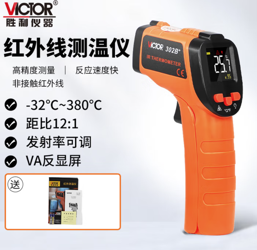 胜利仪器(VICTOR)测温枪工业级红外测温仪高精度油温计厨房烘培测温度枪 VC302B+
