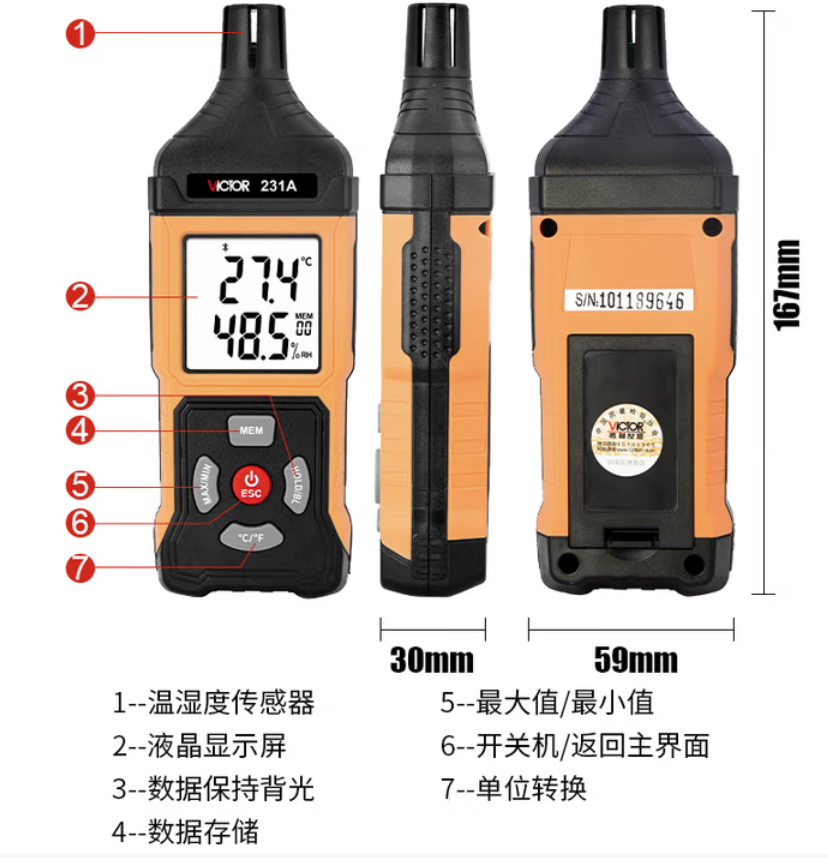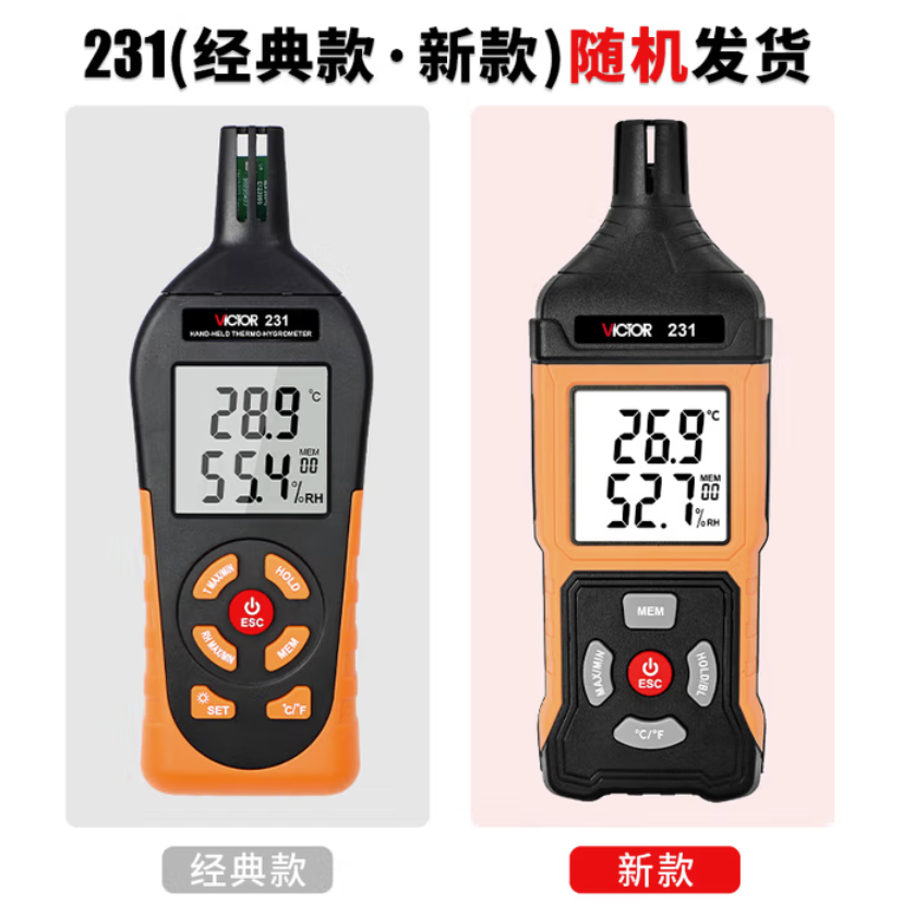 胜利仪器(VICTOR)手持式工业温湿度计高精度家用温度计室内数字湿度检测仪 VC231