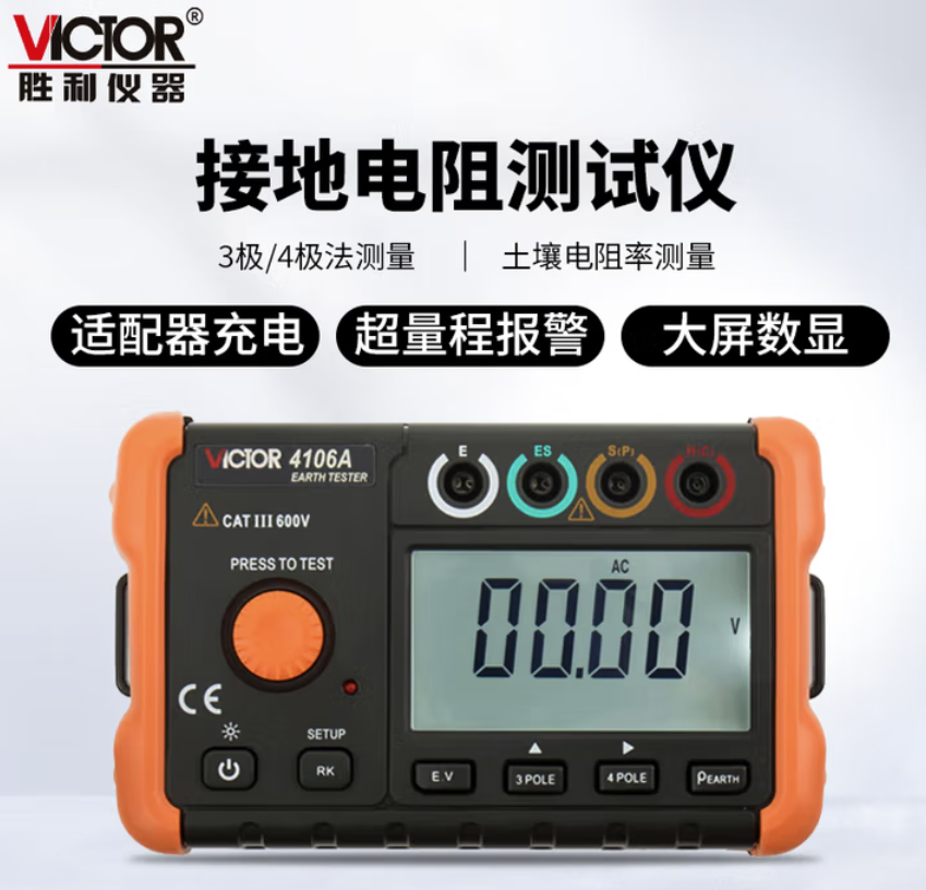 胜利仪器(VICTOR)接地电阻测试仪 土壤电阻测试仪摇表 交流真有效值VC4106A