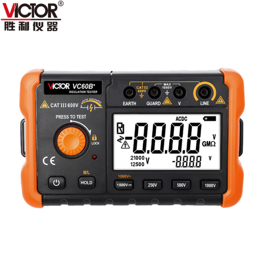胜利仪器(VICTOR)兆欧表 绝缘表 绝缘电阻测试仪 250V/500V/1000V 数字摇表 VC60B+