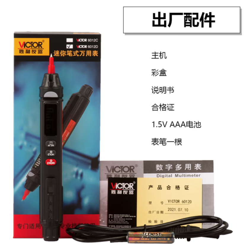 胜利仪器(VICTOR)笔式数字万用表 高精度家用防烧万能表 电工表 自动识别 VC6012D