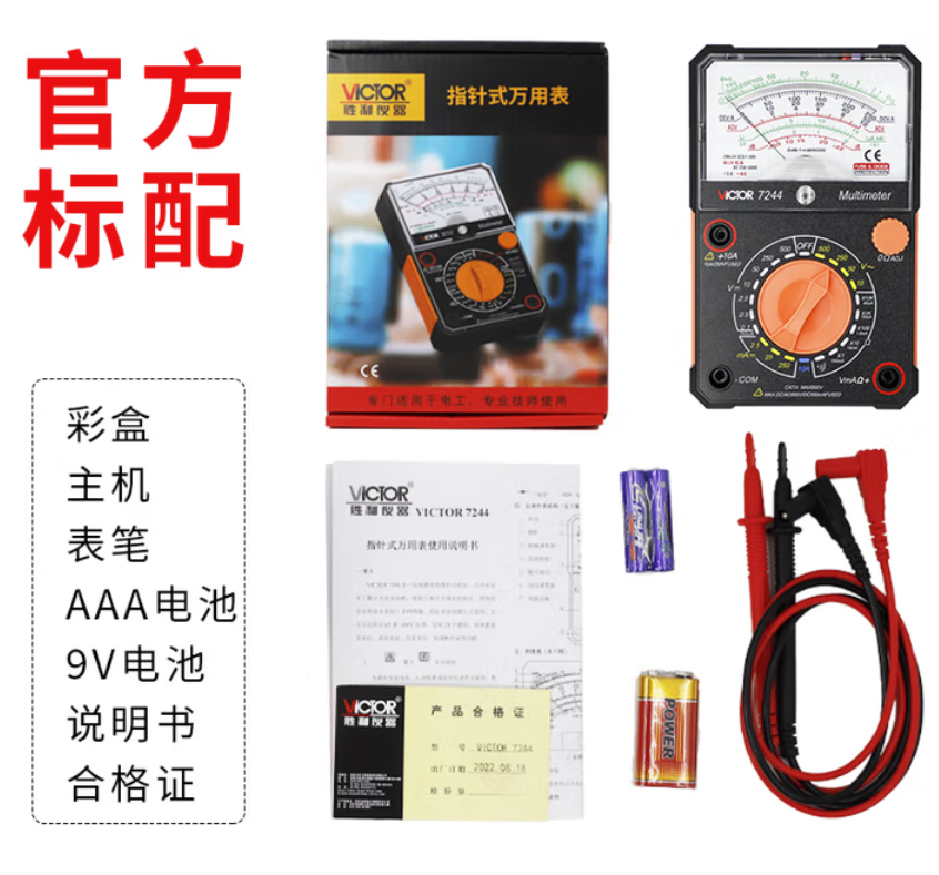 胜利仪器(VICTOR)指针万用表高精度电工专用智能防烧家用机械万能表指针式 VC7244