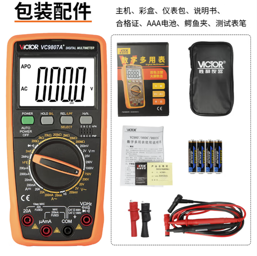 胜利仪器(VICTOR)高精度数字万用表 四位半万能表家用 带背光 频率 电导 VC9807A+